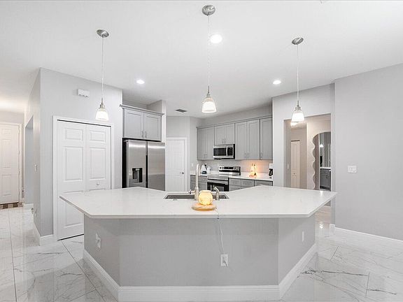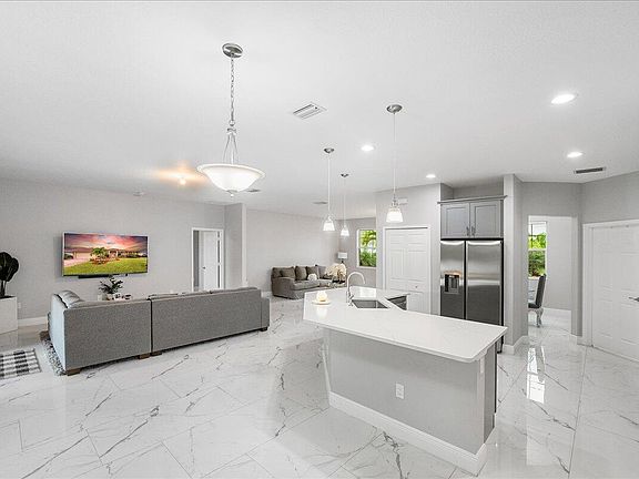 Welcome to Sawgrass Lakes Estates, one of the most desirable communities in Port St. Lucie with a low annual HOA fee. This immaculate 4-bedroom, 3-bath plus study home showcases premium finishes and offers some of the best panoramic lake views in the neighborhood.Inside, enjoy 24'' x 48'' porcelain tile flooring throughout the entire home and matching 24'' x 48'' porcelain tile walls in the master and guest baths. The chef's kitchen is highlighted by quartz countertops, 42'' gray shaker cabinets, and stainless steel appliances, while all bathrooms feature quartz counters with coordinating cabinetry.Relax on the covered patio and take in the wide lake views -- an ideal setting for both entertaining and everyday living. The community also provides dedicated boat and RV storage at a low annual cost, giving residents added convenience and flexibility.