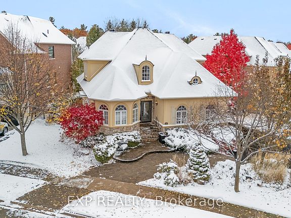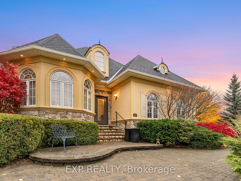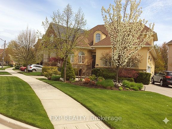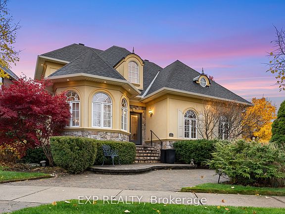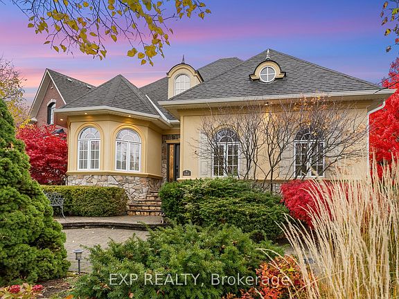 Welcome to 448 Stratford Road, where refined elegance meets tranquil living in one of Oakville's most desirable neighborhoods. Nestled in the prestigious Woodhaven community, this one-owner luxury bungalow-loft offers exceptional craftsmanship, modern updates, and serene views backing onto a protected conservation area. From the moment you arrive, the professionally landscaped grounds and inviting stone interlock walkway set the tone for the sophistication found within. The private backyard oasis features a beautiful water feature, built-in stone seating, and lush natural surroundings, creating the perfect setting for relaxation or entertaining. Step inside to discover a bright, open-concept layout showcasing an impressive two-story great room with floor-to-ceiling stone gas fireplace, remote-controlled blinds, and hardwood flooring throughout the main level. The updated gourmet kitchen boasts new granite countertops, built-in appliances, under-cabinet lighting, and ample space for culinary creativity. The main-floor primary suite offers a peaceful retreat, featuring a 5-piece ensuite with jacuzzi tub, double sinks, and a spacious walk-in closet. Upstairs, you'll find two generous bedrooms, including one with a private 4-piece ensuite, ideal for guests or family. The fully finished lower level expands your living space with a gym area, family room, sitting area, and 3-piece bath - perfect for recreation or relaxation. Located just steps from heritage trails, parks, and top-rated schools, with easy access to shopping, restaurants, and major highways, this property delivers the best of luxury, comfort, and convenience. Features: New roof and gutters Aug 2025, kitchen renovation 2022, (B/i) oven and microwave combo 2024, A/c and furnace replaced 2017, painting (bedroom) 2025 and (main floor) 2022, remote blinds 2023, replaced two single garage doors to one double garage door with overhead clearance 2014.
