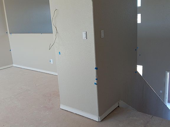 is bordered by staircase leading to a loft & 4 bedrooms. Master suite down stairs, includes single sink vanity, garden tub, walk-in closet. Utility room downstairs. Covered patio is included. One car garage.