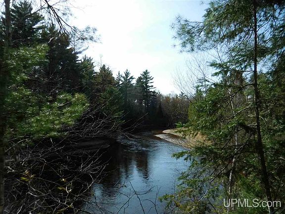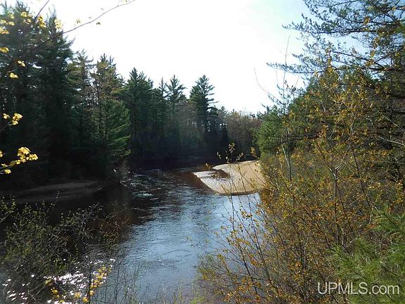 Riverfront cabin on the West Branch of the Manistique River. Over 600' on the river with about 20 acres of timbered upland and year around access on a county road, yet well away from town in a quiet area. The cabin has a newer metal roof, 1 bedroom, large attic that could be finished for another bedroom, 3/4 bath, septic, point well and garage also with newer metal roof.