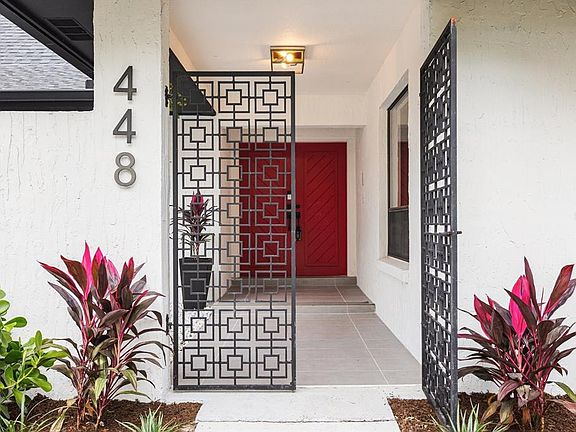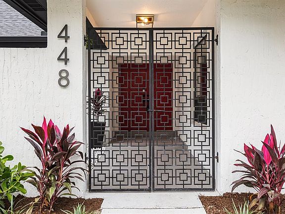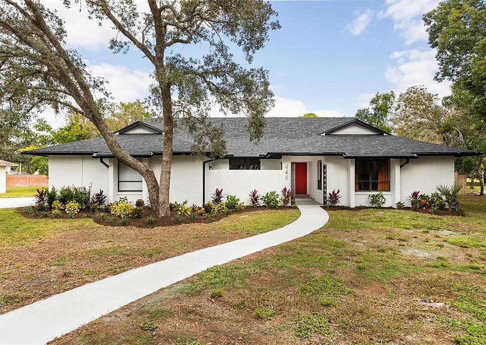 Step inside this beautifully upgraded Sabal Point home, where classic character meets modern comfort. Set on an large, tree-lined lot on a cul-de-sac, just steps away from a peaceful neighborhood park, this 5-bedroom, 3-bath home has been thoughtfully updated to deliver effortless living and timeless appeal. As you approach the home, you’ll love the vintage, custom wrought-iron gate that leads you through the charming courtyard and up to the front door. Once inside, luxury vinyl floors and a light and bright, open floor plan welcome you—with beautiful views of the sparkling pool from the moment you enter. The heart of the home shines with a fully renovated kitchen featuring quartz countertops, stainless steel appliances, large pantry and two breakfast bars. The kitchen opens seamlessly to the family room, formal dining area, and a flexible living room space—making this home ideal for both entertaining and everyday living. Just off the kitchen, the family room impresses with sliders leading to the pool, striking wood-beam ceilings, and a cozy fireplace, creating a space that feels both dramatic and inviting. The desirable three-way split floor plan is perfect for hosting family and friends. The primary suite is located on the right side of the home and features a large walk-in closet, an additional closet, and a gorgeous upgraded bathroom with quartz countertops and a marble shower. A pocket door connects the primary suite to the front bedroom—an ideal setup for a home office, nursery, or private retreat. On the left side of the home, you’ll find two additional bedrooms and an upgraded full bath, while a private guest bedroom at the rear of the home is located across from another beautifully updated full bath with direct pool access. Step outside to your own private retreat: a sparkling pool surrounded by a large, fenced backyard—perfect for relaxing weekends, gatherings with friends, or simply enjoying Florida living at its finest. Recent updates offer peace of mind, including a new roof in 2024, HVAC in 2023 and a brand-new hot water heater in 2025. There's also a whole house water softener, an Oxidizing CleanStart Laundry System (clean, fresh-smelling laundry using cold water and less detergents) and a reverse osmosis system in the kitchen. With modern updates, timeless style, and an unbeatable location near parks, nature trails, shopping, dining, and major roadways, this Sabal Point home truly has it all. Schedule your private tour of this special home today!