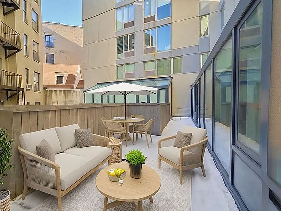 This beautifully designed 570 ft 1 bedroom home offers a smart, open layout with three distinct living areas, a modern bathroom, and a washer and dryer for added convenience. Unique to this home is a private outdoor terrace and a glass-enclosed greenhouse, creating a tranquil escape rarely found in Manhattan living.