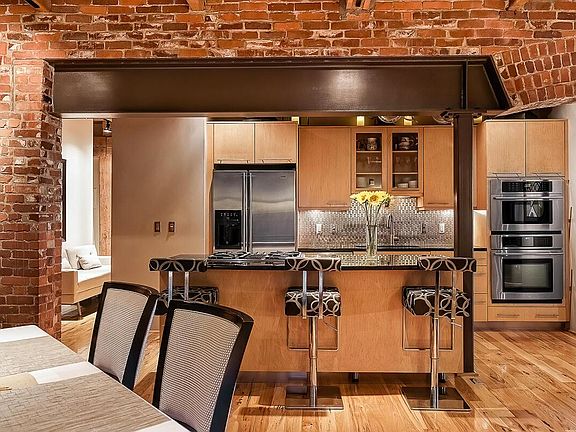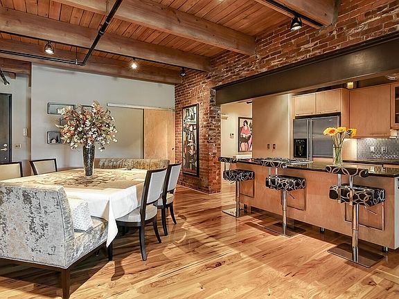 Stunningly spacious loft condo in the unique -one of a kind- Buggyworks. With it's unmatched architectural character, this RARE open concept 1719 square foot space has preserved it's interior original industrial features. Hickory hardwood floors, exposed brick, high ceilings with exposed beams, with modern touches of stainless steel appliances and granite kitchen counter tops. Two additional spaces adaptable for a 2nd bedroom, 3rd bedroom or separate office space. Enjoy many beautiful sunsets from this west facing loft condo or enjoy from the shared roof top deck /patio. This Buggyworks building loft comes with TWO reserved parking spaces, 1 garage space and 1 carport, and TWO storage units.