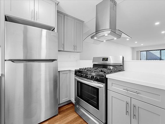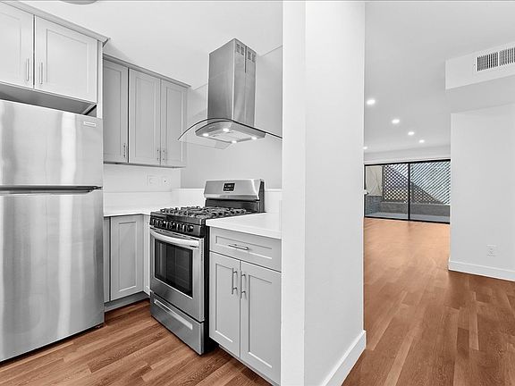 Private patioSpacious two-bedroom apartmentQuiet tree-lined streetAmple cabinetryWell-designed u-shaped kitchenModern stainless steel appliancesGenerous countertop space