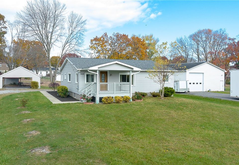 Welcome home to 448 Whitestown Road! This charming 3 bedroom 1.5 bath one level home is move in ready!! Just imagine your Christmas tree in front of the beautiful bay window in the new carpeted living room. Gather around the dining room table after you enjoyed cooking in your updated kitchen with newer appliances and floors. Tons of Storage space in hallway leading to the freshly painted bedrooms and full updated bath. Walk Out basement with Laundry adds for potential living space or storage. On summer nights enjoy your back deck and large flat back yard. Tons of parking in your long gravel driveway or under the carport.