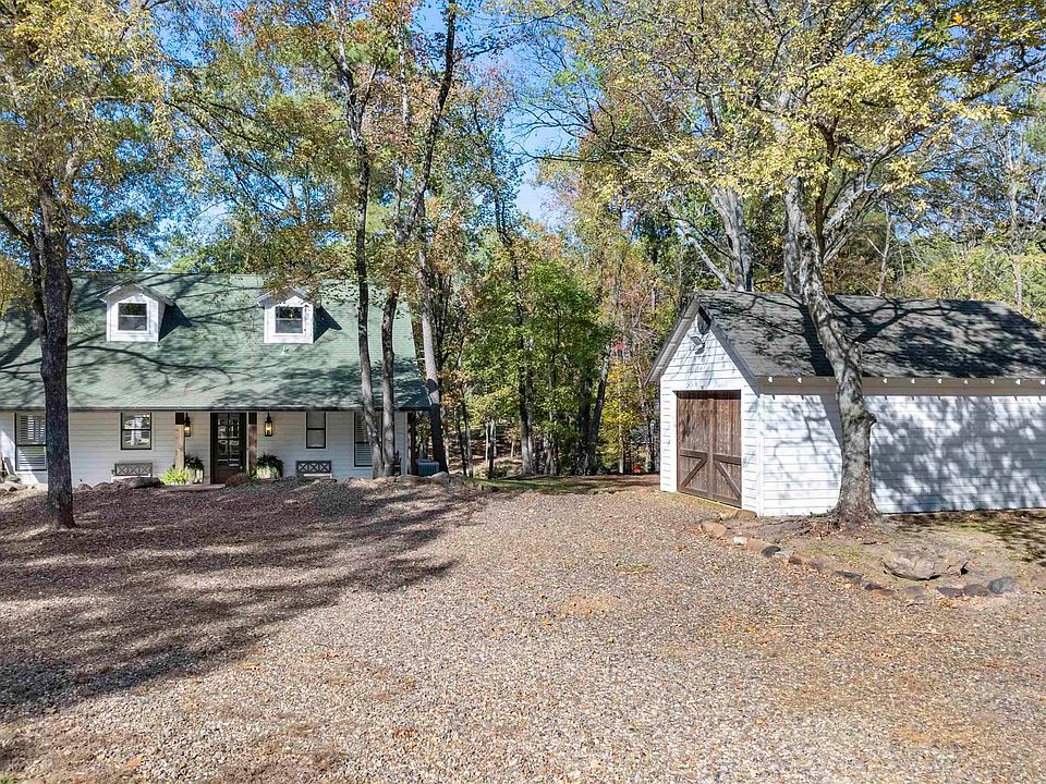 Spectacular Transformation BEAUTIFUL LAKE CYPRESS SPRINGS WATERFRONT! 180 FT SHORELINE 1.7 ACRES Gated Community of Tall Tree. 3 Bedrooms, 3.5 Bathrooms, 2 Living Areas, Lakeside Sunroom. Have you been Looking for a Place to Unplug, Unwind & Kick Back? This is it! Picturesque Cedar Home on Lake Cypress Springs! Open Concept Great Room/Kitchen/Dining w/ Captivating Views of The Lake. This Home Features Vaulted Ceiling, Wood Burning Fireplace Totally updated in 2022. Flooring, countertops, backsplash, paint, tile and so much more! Split Floor Plan w/ Lovely Primary Suite on Main floor Second Living Area w/ Full Bath on 2nd Floor as well as Two Additional Bedrooms & Bath. Boat House w/ Lift & Covered Lounging Deck and lakeside Rock Firepit w/ seating. Additionally, Experience the Fun of Fishing at the Catfish Pond which you share with a few neighbors. Detached One Car Garage is a welcome bonus! Most Furnishings convey. Sellers to Provide Exclusion List. A beautiful property awaits you on The Most Beautiful Lake in Texas - Lake Cypress Springs!