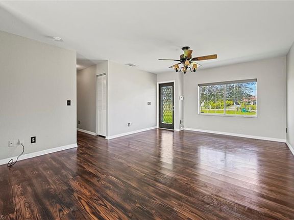 Set on 1.14 fully-fenced acres and situated in a tranquil area of Naples, just off Immokalee Road, this peaceful haven is mere minutes from major attractions, extensive shopping, dining options, and I-75. If you require space for machinery, trailers, boats, or larger trucks, this lot provides ample gravel storage behind the home. The interior boasts recent updates, including rich laminate flooring and a spotless kitchen equipped with stainless steel appliances. The house features three roomy bedrooms and two bathrooms, spanning 1,058 square feet of living area that appears even more expansive. No HOA restrictions and not located in a flood zone!