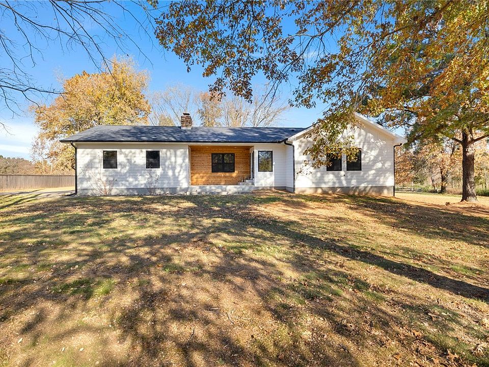 The definition of peaceful — a stylish, modern retreat tucked among old-growth trees on 1.36 private acres is just minutes from everything you need. This 5-bedroom, 3-bath home blends updated design with cozy character. Real hardwood floors, high-end fixtures, and thoughtful finishes create a fresh, modern feel, while keeping the charm of an older home with details like the rock fireplace, sunroom, and dreamy front porch.