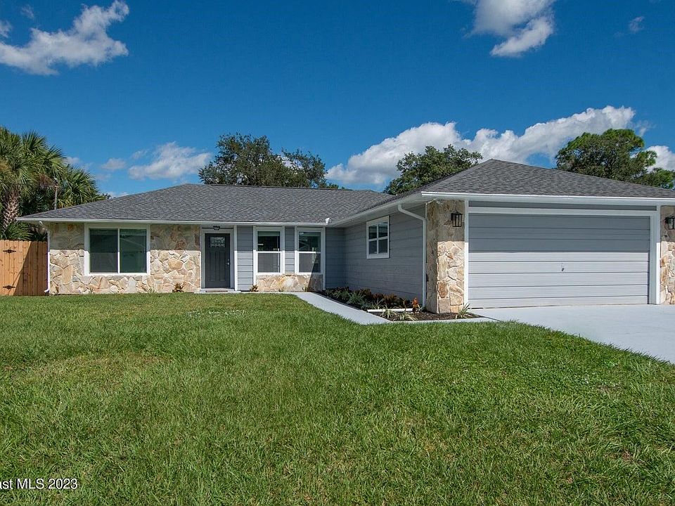 FULLY REMODELED 3 bedrooms/ 2 bathrooms single family home. All upgrades done in 2023!! Beautiful porcelain tile throughout and wooden beams in the living area. ALL BRAND NEW stainless steel appliance, kitchen cabinets, granite countertops, and a large walk-in pantry. Impact sliding glass windows and french doors. Double sink vanity in master suite with a walk-in shower/ closet. NEW roof, A/C, fence, and paint in & out. Private fenced in backyard with screened in, in-ground pool. Huge driveway for boats/ RV parking. Lush landscaping w/ a wonderful quiet neighborhood. Walking steps to elementary school. XLNT location with easy access to KSC, 528, US-1, restaurants, services, amenities, and just 45 mins to Orlando/ attractions. MUST SEE!!