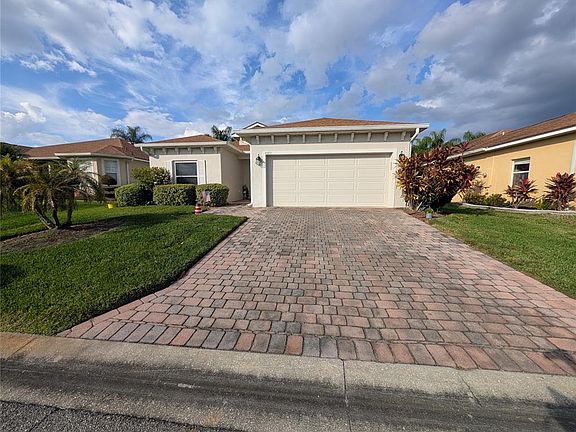Don’t let this one slip by! This beautifully cared-for ESSEX floor plan home in Lake Ashton Golf Club is waiting for you. With 2 bedrooms, 2 baths, plus a den. Tucked into a peaceful corner of the community, yet just minutes from all the resort-style amenities this 55+ neighborhood is known for with the CDD BOND PAID IN FULL! From the moment you arrive, you’ll notice the pride of ownership: lush landscaping, stately palms, paver walk and drive. Step inside to a bright, welcoming foyer. The guest suite is cleverly tucked away with its own pocket door for privacy, offering a spacious bedroom, full bath, and nearby linen closet. The heart of the home is the open living area flexible dining space, a cozy living room with a ceiling fan, and triple sliders that open to the lanai, perfect for year-round enjoyment. The kitchen has Corian counters and sink, oak cabinetry with 42" uppers and crown molding, under-cabinet lighting, added lower cabinets for storage, glass backsplash, pantry, and a breakfast bar. Plus, the laundry closet has extra cabinetry, and the washer/dryer are included. The primary suite is a retreat of its own, featuring a large bedroom with walk-in closet, double sliders to the lanai, and a bath with dual sinks, comfort-height vanity, and tiled shower. Between the primary and guest suites, you’ll find a versatile den/home office. NEW ROOF (2018), NEW A/C (2019), whole-house water filtration, and tile flooring throughout.