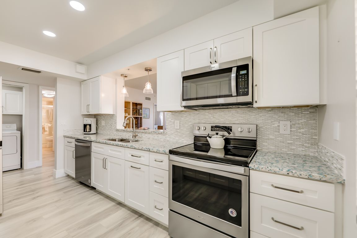 Modern tileRenovated kitchenSpacious master suiteBreathtaking water viewsFull-size washer and dryerUnforgettable sunsetsCorner condo