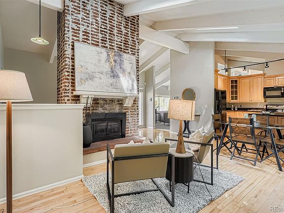 - Description: Vaulted Beamed Ceiling, Built-In Shelves