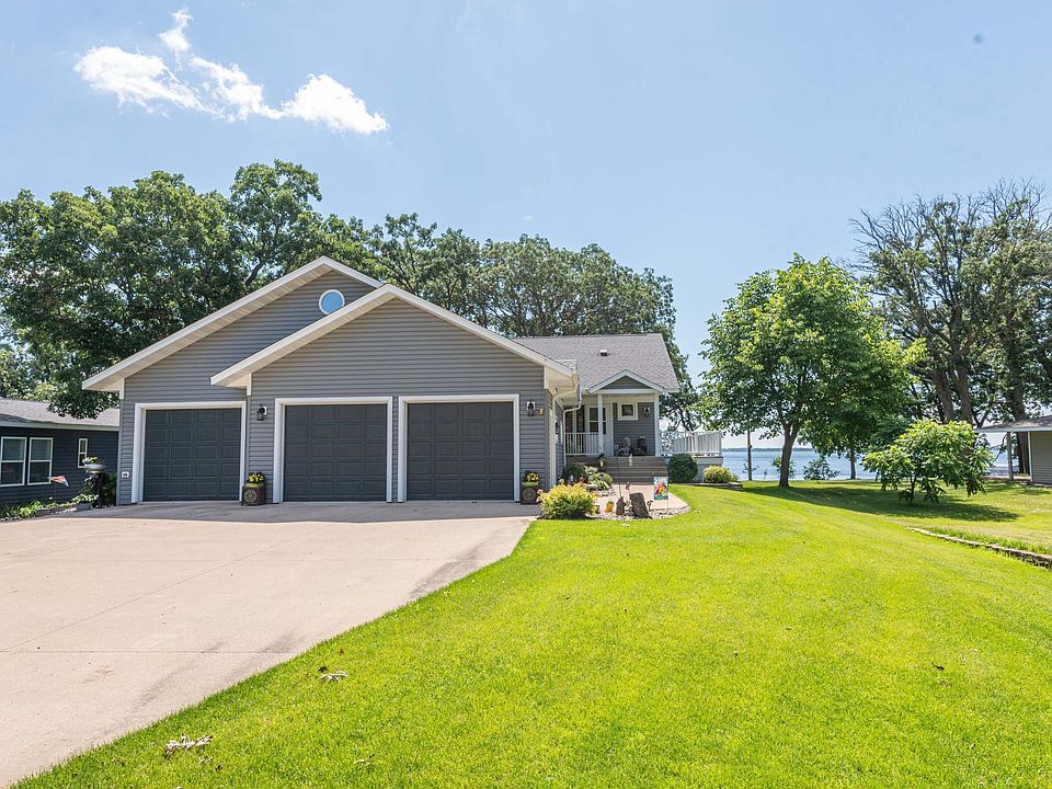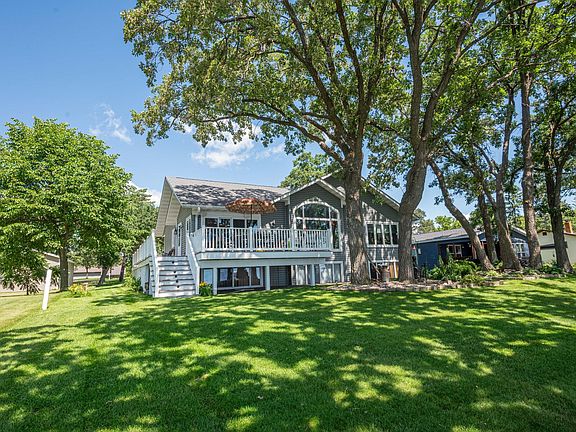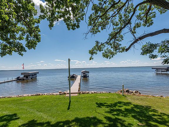 Exceptional 4BR 3BA home sitting on a perfect level lot with sandy swimming on Rush Lake. This gorgeous home features 3740 fin sq ft, excellent landscaping and includes a spacious 1AC backlot with 40x60 pole shed w/ 14' sidewalls and a guest cottage. This shady, irrigated lot perfect level lakeshore on beautiful Rush Lake, which is known for spectacular fishing. Unbeatable views from the expansive lakeside windows & the wraparound deck. Ideal kitchen overlooking an open floorplan, vaulted veilings, and gas fireplace adds a cozy touch. Spacious main fl primary suite w/ jetted tub & walk in closet. Dream main floor laundry room. Oversized 3-car attached heated garage adds a bonus room above, great for activities/bunks. The lower level features a phenomenal bar-room perfect for entertaining friends or hosting a big game. Wonderfully maintained & exceptionally designed, you will not be disappointed at the combination of size & comfort in this gorgeous lake property.