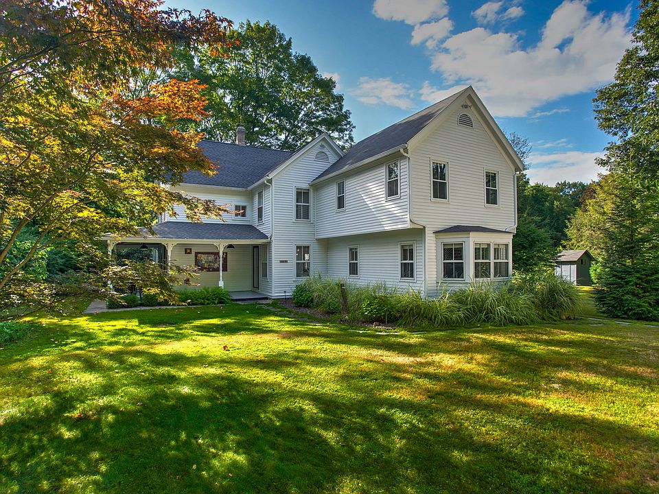 A rare blend of timeless character & modern updates, this expanded 4-bedroom, 3-bath Colonial Victorian Farmhouse offers deeded lake rights & deeded frontage on Canoe Brook Lake. You're welcomed by a gracious wraparound porch framed by mature flowering trees, perennial gardens, & a classic carriage house/barn. Inside, rich hardwood floors, custom millwork, & soft neutral finishes create a warm, inviting atmosphere. Spacious living room w/ wide-plank floors, a wood-burning fireplace, built-ins, & a sunlit picture window. Dining room, also w/ wide-plank flooring, opens through French doors to a charming patio overlooking the peaceful grounds. Remodeled chef's kitchen is a true centerpiece, featuring a large center island, six-burner Bertazzoni gas range, stainless steel appliances, quartz countertops, & a cozy breakfast nook. Adjacent is a generous pantry, mudroom, laundry, & access to a second garden patio. Sun-filled family room addition doubles as a potential first-floor primary suite w/ a window seat, dual closets, its own heating zone, & a marble/tile bath w/ glass shower. Upstairs, three well-sized bedrooms plus a versatile office/fourth bedroom share a renovated hall bath. The primary suite includes a new en suite bath & walk-in closet. Walk-up attic provides storage & future expansion potential. Recent updates: gas furnace, central air, roof, exterior paint, & more. A rare opportunity to enjoy lake-life living w/ historic charm, modern amenities, & an idyllic setting.
