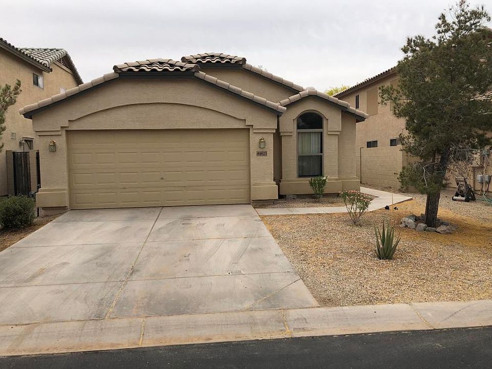 This marvelous Maricopa home features 16inch ceramic tile throughout dinning, kitchen and halls. Plus bedrooms with laminate floors, neutral colors, and vaulted ceilings with fans!Kitchen has granite countertops, stainless steel dishwasher, stove, microwave & sink! Garage has attached cabinets and workbench ready for your projects & storage!Solar panels on this beauty please ask for more details! Backyard is ready for all your custom touches!