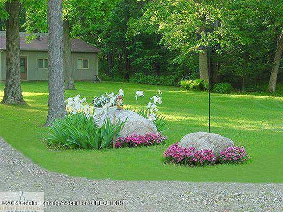 A Hidden Treasure! Private lake frontage with over 3,100 sq. ft. Updated ranch with walkout on 9.77 acres, 2 pole barns, 2 large enough for a huge RV! Open floor plan with 4 bedrooms, 3 baths, tons of windows,