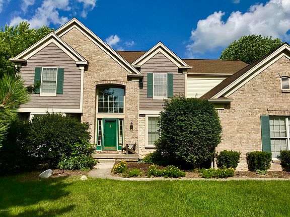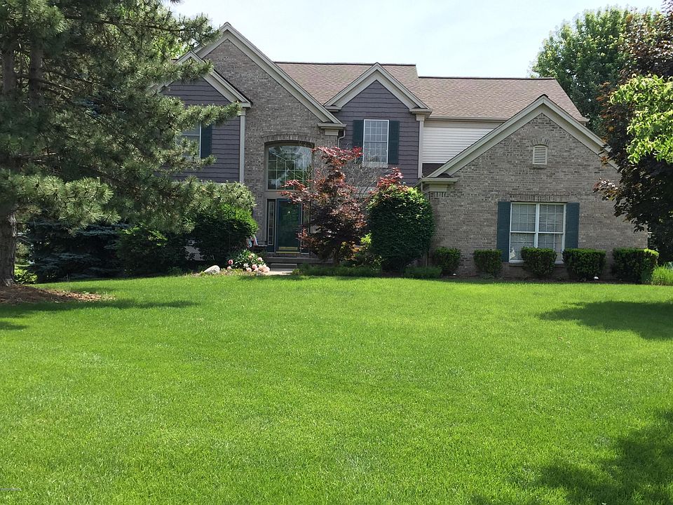 A 2 Story Executive Home in The Orchards, Ada, MI. Come in and find an impressive home. The front entry opens to a stunning 2 story foyer. The split staircase leads to the spacious 4 bedrooms upstairs. A fireplace in the family room adds warmth. The kitchen features a center island; built-In desk; an eating area; pantry; and snack bar. There is a finished walkout level for additional living space. The main floor laundry has an access door to the deck. Outside you will find a large lot; patio, basketball hoop, underground sprinkler system, 3 stall garage; mature landscaping and frontage on the Pond. The pond has fishing, no wake boating, swimming, and winter time ice skating.