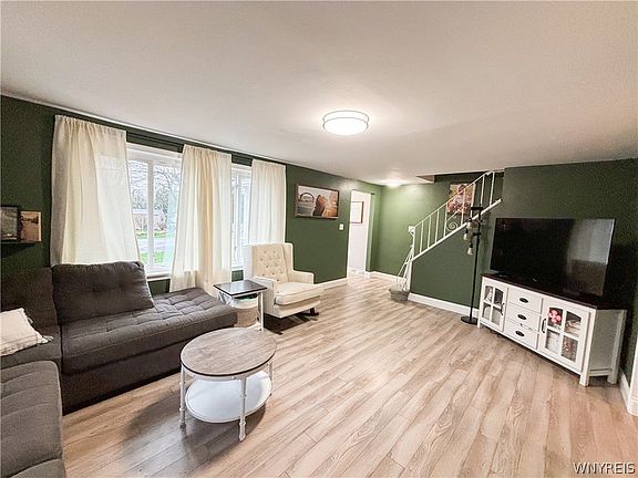 Discover the charm of this 4 bedroom, 1 bath, brick & vinyl cape-style is a gem of a home that's ready for you to settle in without any hassle. The spacious LR is perfect for family time, offering ample space for relaxation & gatherings. Experience the functionality & convenience of the kitchen, boasting plenty of cabinet space to accommodate storage needs. The addition of a peninsula provides additional counter space & a casual dining area, perfect for quick meals or socializing while cooking, offering a comfortable setting for family meals or gatherings with friends. The partially finished basement adds potential for additional living or entertainment space, while the back deck's beautiful view of the yard creates a relaxing outdoor retreat. Updates include: gas stove, refrigerator, microwave, dishwasher, washer & dryer ('22) & AC unit (March '24). Minutes away from Woodlawn Beach, the I-90, and various amenities adds to the fantastic location for convenience and leisure. Open House, Sat., 4/20, 12-3pm. Showings start Tues., 4/16 @ 9AM. Per the sellers request he would like all offers in by Monday, 4/22 @ 5pm.