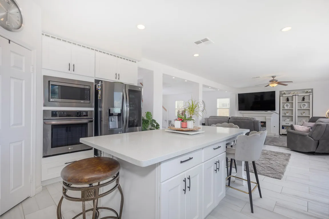 - Features: Kitchen Island, Kitchen/Family Room Combo, Quartz Counters, Remodeled, Updated Kitchen