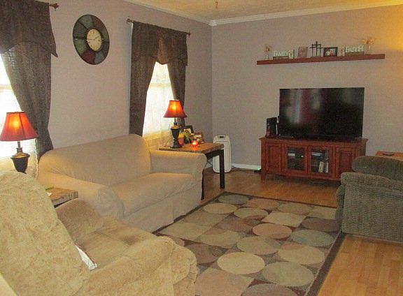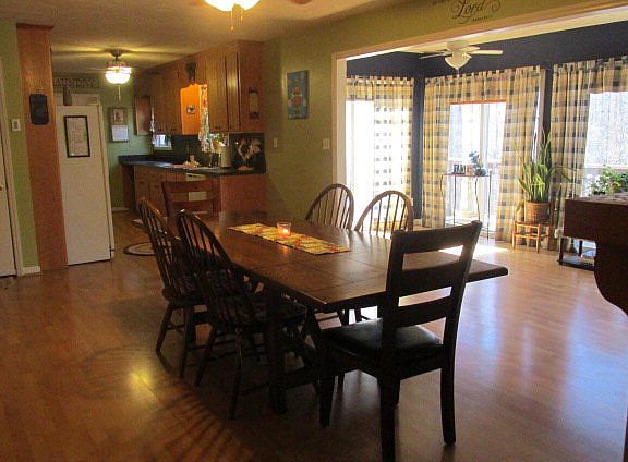 This home has a lovely open floor plan! From the Living Rm to Dining and on to Sunroom and then deck overlooking private back yard. The kitchen has cabinets on both sides, door to laundry and double garage opens directly to kitchen area. The Master bedroom is large enough for King size bed and has full bath. A new garage door will be installed by seller.The deck goes across entire back of sunroom. Unfinished Basement area could easily be finished and steps could go from inside of living area. Lots of home for the money, open farm area and close to Infinity Acres, short drive to Greensboro.