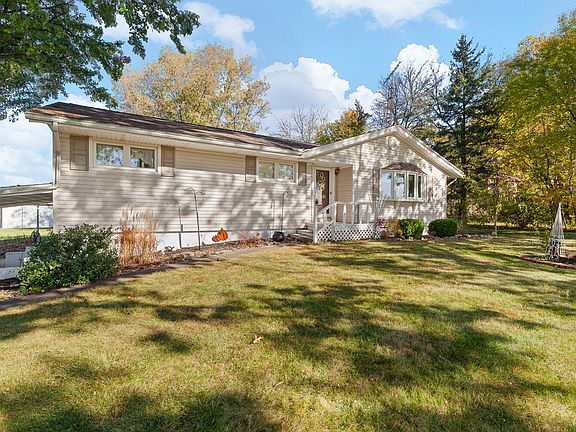 The 3-bedroom, 1.5-bath home is surrounded by 4 acres of open lawn and mature trees, with an additional 10 acres currently leased to a neighboring farmer. Inside, you'll find a warm and inviting atmosphere with a full finished basement that adds extra living and storage space perfect for gatherings, hobbies, or relaxing after a day outdoors.
