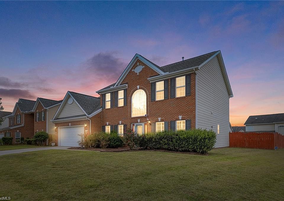 Welcome to this gracious Colonial-style home! Step into the dramatic two-story foyer with a striking sunburst window and hardwood floors. Entertain in the formal dining room & living room, accented by tray ceiling, or gather in the cherry kitchen featuring a center island, s/s appliances, pantry, & a bright breakfast area. The enormous family room, complete with a gas log fireplace and ceiling fan, provides the perfect space for relaxation, while the first-floor office with elegant crown molding offers a refined work-from-home retreat. Upstairs, the primary suite impresses with a vaulted ceiling, separate columned sitting area, remote-controlled ceiling fan, oversized WIC, and a luxurious bath boasting a Jacuzzi tub, stall shower, & dual vanities. 3 additional bedrooms share a well-appointed full bath. Outdoors, enjoy a fenced yard with a patio, ideal for entertaining or quiet evenings. A two-car garage & location just minutes to Highway 70, shopping complete this exceptional home.
