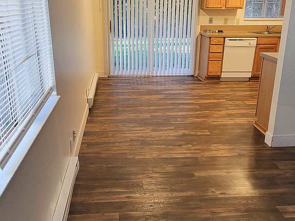 This single-story duplex features LVP flooring throughout, along with a refrigerator, stove/oven, and dishwasher in the kitchen. The dining room offers a sliding glass door for outdoor access. Additionally, the unit includes an attached single-car garage and washer/dryer hookups.
