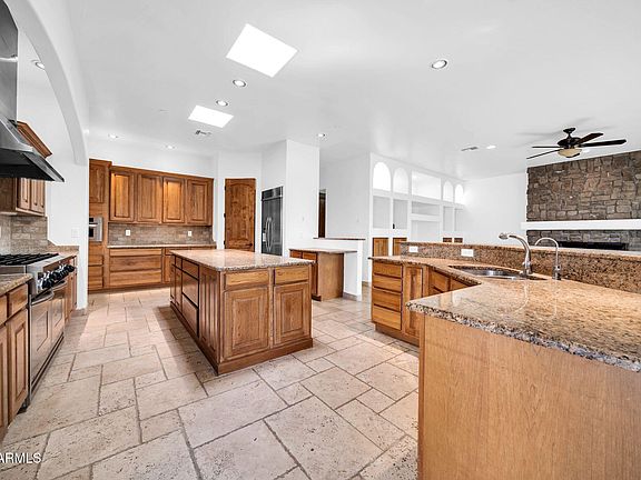 Absolutely stunning Custom Home on 1.6 Acre Lot! This beauty has it all! Upgrades galore: Fresh exterior and interior paint, travertine flooring, and stunning alder doors throughout. Enormous kitchen with 8 burner chef's range/oven, granite countertops with huge center island, and all Kitchen Aid stainless steel appliances convey! Owned Solar a huge plus! Must see the picturesque theatre room with projector screen and surround sound! Primary suite offers separate exit to backyard, bath with double sinks, jetted jacuzzi tub, custom travertine countertops and walk-in shower. Step outside to the beautiful backyard with extended covered patio, built in BBQ, travertine pool with waterfall, and spa! Double RV gates, circular driveway, EV charging in garage, and the list goes on! Welcome Home!
