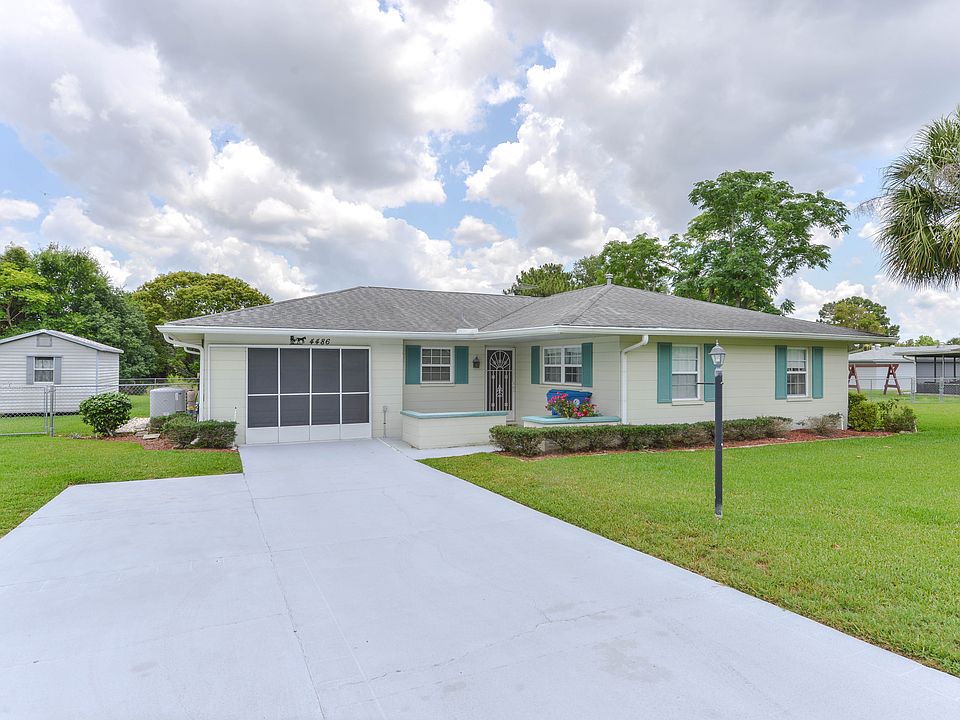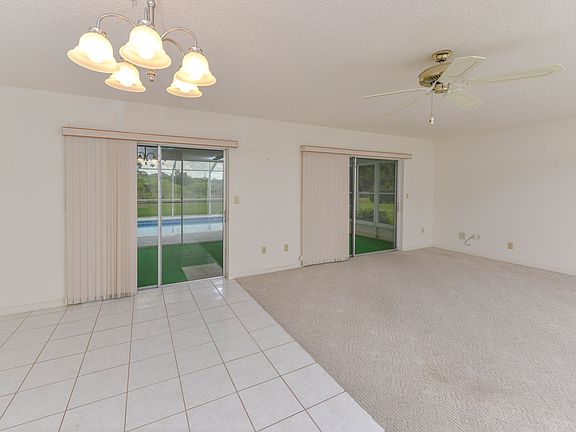 An extended driveway leaves enough parking for an RV if needed. Nestled on an oversized lot this home has plenty to offer. A large living area greets you when you walk through the door. The living room leads right into the dining room area. Two slider doors in the living area give access to the outdoor space, great for entertaining! The kitchen has everything you need and is just off the dining room for easy serving. The bedrooms are all a comfortable size and have a bathroom conveniently located next to them. The enclosed porch has windows surrounding it for views of the pool and ceiling fans above to keep things comfortable. The beautiful views of the no build behind backyard will relax you at the end of the day. The yard is completely fenced in and provides a shed for added storage.