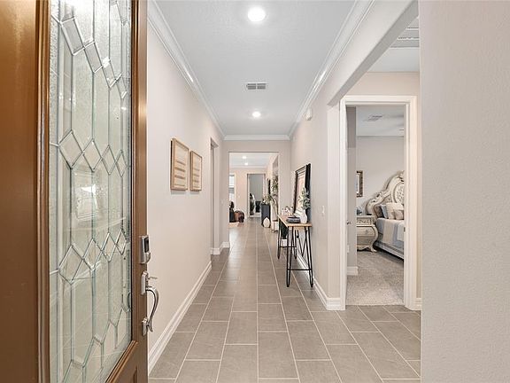 Step into the elegance and comfort of this beautifully appointed turn-key Connect model, where thoughtful design meets everyday ease. Located within the serene, guard-gated community of Ocala Preserve, this home offers three spacious bedrooms, two and a half baths, and a versatile office or den that provides flexible space perfect for enjoying quiet moments, pursuing creative interests, or simply expanding your living space. The open-concept layout of this upscale residence is enhanced by volume ceilings with elegant crown molding and premium porcelain plank tile flooring that extends throughout the main living areas. A spacious gathering room offers the perfect setting for both quiet relaxation and lively entertaining, with triple glass sliders that welcome abundant natural light and open to a covered lanai, creating an inviting spot for morning coffee or unwinding in the evening. The chef’s kitchen is both stylish and functional, offering a generous quartz-topped island with pendant lighting, soft-close cabinetry, LED under-cabinet lighting, and stainless steel appliances, including a gas cooktop and vented hood. A framed refrigerator enclosure adds a custom touch, while the layout encourages easy conversation and casual dining. The primary suite offers a peaceful retreat, featuring a large walk-in closet and en suite bath offering a large double-sink vanity and a private water closet. Two guest bedrooms share a full bath with a soaking tub and shower, and an additional half bath adds flexibility for visitors. A full laundry room includes a washer and dryer, a utility sink, and desirable extra space for a second refrigerator or storage. This beautifully upgraded home is move-in ready, complete with all furnishings, and offers immediate access to the resort-style amenities of Ocala Preserve. With no CDD fees, high-speed internet included, and full membership to all amenities, residents can enjoy a relaxed, maintenance-free lifestyle surrounded by comfort, convenience, and community. Enjoy dining at the on-site restaurant with an executive chef, unwind with spa services including massages, facials, and mani-pedis, or store your favorite vintages in your personal wine locker. Outdoor enthusiasts will love the boathouse stocked with kayaks, canoes, and paddleboats, plus catch-and-release fishing, a fenced dog park, and an open-air fitness area. The abundant activities include group fitness classes and a state-of-the-art fitness center, tennis, pickleball, bocce, and horseshoe pits, miles of dedicated walking and biking trails, and a Tom Lehman-designed golf course and two resort-style pools with a 3rd pool underway. When it’s time to relax, the HOA has you covered with front, back, and side lawn and landscape care, including irrigation, trimming, fertilizing, and mulching 2x a year. Make your move today and begin enjoying these first-class amenities and a convenient location close to the World Equestrian Center, shopping, banking, restaurants, medical facilities, and so much more!