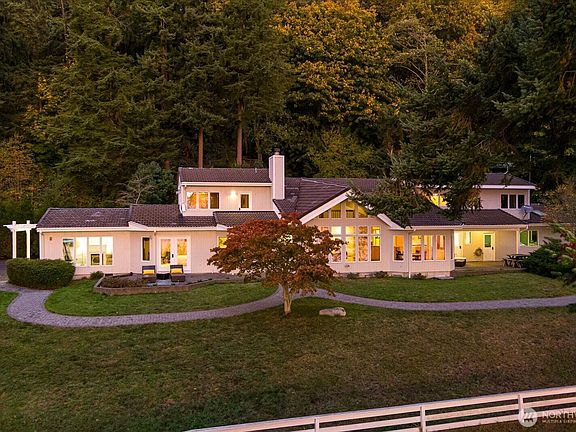 Horse pasturesBonus roomPrivate primary suiteWet barVaulted cedar ceilingsWaterfront retreat