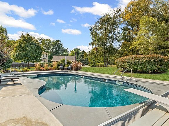 Spacious 5,500 sq ft ranch with a full finished basement, attached 2-car garage, and detached outbuilding. Elegant cherry wood finishes create a timeless look throughout the main level. Floor plan includes 4 bedrooms plus a bonus room over the garage that can serve as a 5th bedroom or flexible living space. The finished basement offers 10’ ceilings, a large open area perfect for recreation, two additional rooms, and a half bath—providing plenty of options for entertaining, office space, or storage. Outdoor living features an inground pool, hot tub, giant covered back porch, and updated concrete around the pool and driveway. The backyard setting creates a private oasis designed for both relaxation and entertaining.This property combines size, style, and amenities in a convenient location—ready to enjoy from day one.