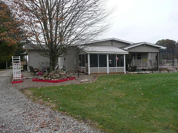 This well-maintained ranch style home radiates with pride of ownership and is situated on a 1+ acre lot with a heated outbuilding/workshop, shed, rear deck and screened porch! MANY updates include newer windows, newer roof, a remodeled kitchen with gorgeous cabinets, granite countertops, upgraded appliances/JennAir Range, gorgeous hardwood floors, 1st floor laundry, living room, dining room, family room with cozy fireplace, updated bathrooms, and a partially finished lower level with rec room! Property is serviced by city water and there is also well water for irrigation! Sellers modified bedrooms 2 & 3 into one large bedroom (this can be reversed for optional 3 BR floor plan). This charming home is picture perfect, in impeccable condition, and has a ready-to-move-in-price!