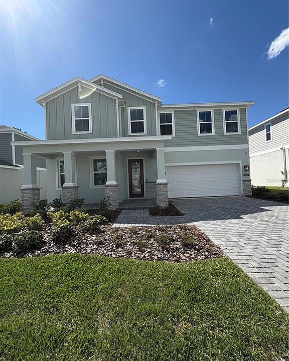 Under Construction. Discover the perfect blend of style and functionality in this stunning Acacia plan with 9'4" first floor ceilings, offering 5 spacious bedrooms and 3 full baths, including a luxurious 1st floor Primary Suite, and a private Guest Bedroom near the front entry. The open-concept Great Room flows effortlessly to the large covered Lanai—ideal for entertaining and enjoying outdoor living. The gourmet kitchen is a chef’s dream, featuring 42" cabinets with crown molding, quartz countertops, a large center island, and stainless steel appliances including built-in gas oven and cooktop. Beautiful tile flooring enhances the 1st floor main living areas, while window blinds are included throughout. Upstairs, a versatile Loft provides the perfect space for a media room, additional gathering space, or home gym. Thoughtful touches continue outside with decorative stone accents on front exterior, attractive landscaping, and a brick paver driveway and lead walk that add to this home’s outstanding curb appeal. Great community amenities include covered Playground and walking trails featuring outdoor exercise equipment, with future amenities to include pool and cabana. Oakview is conveniently located just 1 mile from SR 429 for easy commuting, and only 11 miles from Wekiva Springs State Park and 12 minutes from Lake Apopka. Additionally, the Community is close to the upcoming new Wyld Oaks development featuring a 3 acre medical campus and extensive retail spaces.