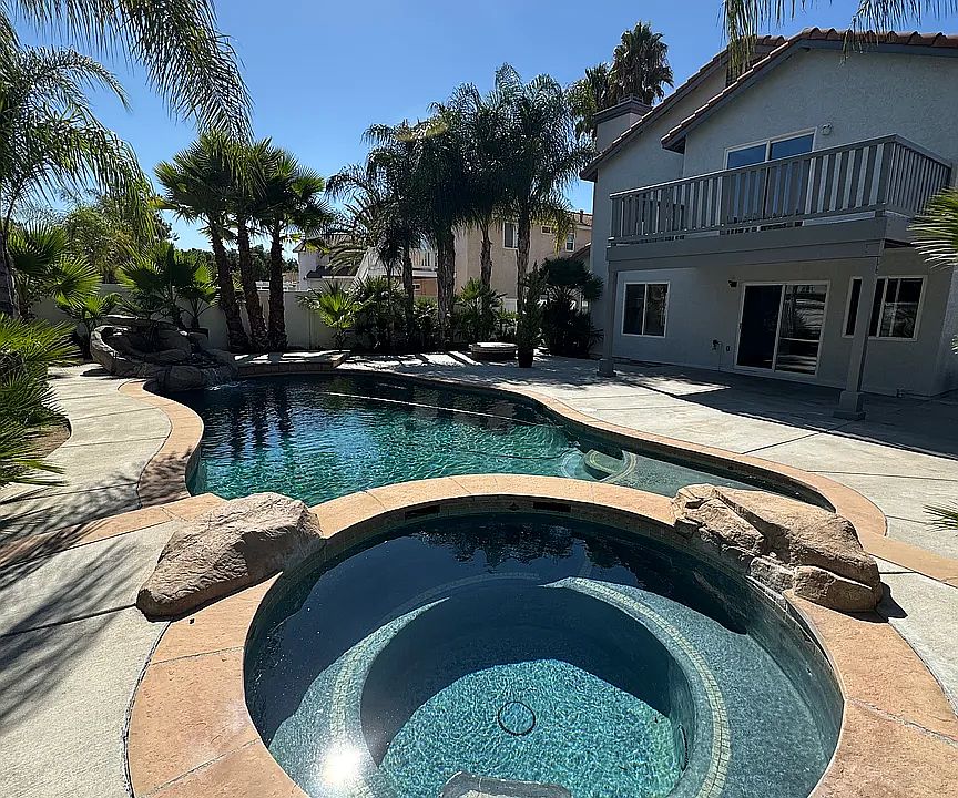 The spacious backyard is perfect for relaxing or entertaining, with a sparkling built-in pool and jacuzzi, plus a custom fire pit. Inside, you'll enjoy a modern kitchen with all-new stainless steel appliances, and we're even including a washer and dryer for your convenience. The only appliance tenants will need to provide is a refrigerator.