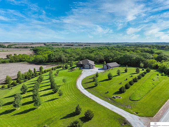Perfectly situated on nearly 13 acres with easy access to Lincoln and Omaha, this exceptional 4 bed/4.5 bath/3-car attached garage, custom-built home with 5482 finished SF features an impressive open-concept layout with 2 full kitchens, 1 in the heart of the home and another on the lower-level for entertaining family and friends. Excellent finishes and fixtures like high ceilings, beautiful hardwood floors, custom cabinetry, main floor laundry, mudroom with ¾ bath off the garage, walk-in pantry, and so much more. High efficiency/low maintenance design including geothermal heating & cooling saves time and money. Outside enjoy spectacular views from the covered deck on the north and east sides of the home, walk-out to the covered patio with hot tub, landscaped grounds, and massive grove of Burr Oak trees. Check out the heated outbuilding with 1805 SF and 14' garage doors. Hunt on the property and the surrounding 40 acres (w/owners' permission). This is country living at its best!