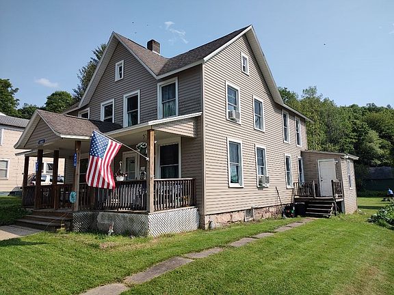 This 2-unit property is a good opportunity for anyone looking for an investment! 2 story double home on full basement, large in town lot with a 2-car detached garage. One rental unit has LR, DR/Kitchen, Enclosed sun porch, 2nd floor has 2 bedrooms and a full bath. 2nd rental unit has LR/DR/Kitchen on the first floor. 2nd floor has 2 bedrooms and a full bathroom. Each unit is heated with natural gas FHA furnaces. 100 amp service for both and each unit has electric hot water heaters. Dwellings are served by an on-site well and public sewer. Both units currently renting for $750 each per month. Easy access to Rt. 15.