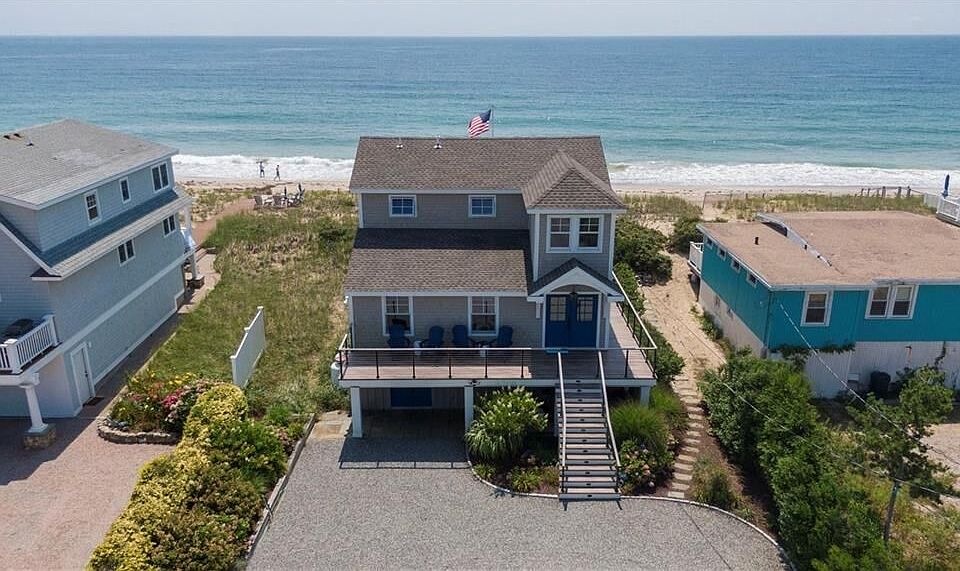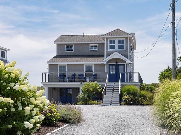 A rare opportunity to own a beautiful oceanfront home on Atlantic Avenue in Misquamicut. This coastal home has been thoughtfully renovated with comforts and modern amenities for your family and friends to enjoy. As you enter through the front door you are taken in by the ocean views as you look through the large expansive windows. The open first floor with Living room and eat-in Kitchen with quartz and marble counters is convenient for entertaining with two sliders that leads to outdoor dining. A bedroom/den and full bath is also located on this level. The large wrap around first floor deck is wonderful for gathering, to take in unparalleled views of the Atlantic Ocean, Block Island, Montauk and of course those amazing sunsets. The second floor includes a full bath and two bedrooms with gorgeous ocean views. Each bedroom has to access to the second floor deck. The lower level features a game room, full bath and laundry. Just steps to the beach for enjoying swimming, beach walks or simply lounging in the sun. This homes conveys with furnishings. Everything is here for you, move right in on day of closing and start enjoying the perfect beach get-away you have been dreaming of.