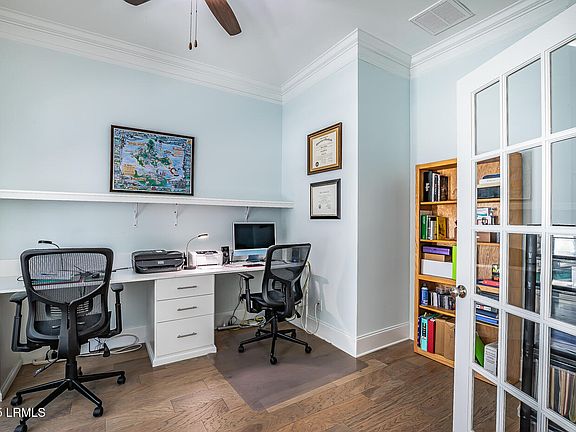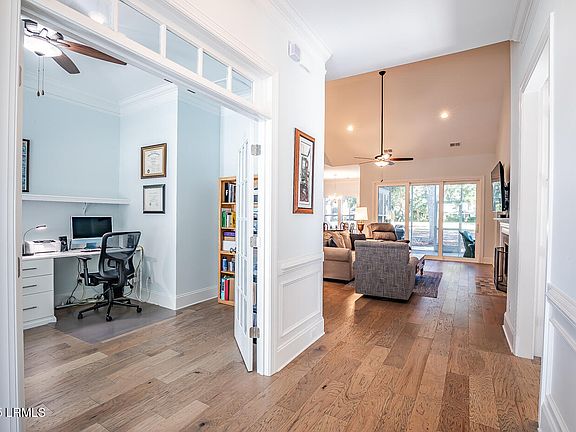 Discover the opportunity to own a coastal-inspired home on picturesque Dataw Island. Built in 2021, this home is a masterpiece of thoughtful design and craftsmanship, offering over 2,500 sq. ft. of stunning living space. From the moment you enter, you'll be captivated by the beauty of the hardwood floors, custom crown moldings, and designer-inspired details throughout the main level. The Great Room, with its soaring cathedral ceilings, flows seamlessly into the chef's Kitchen and a spacious Screen Porch featuring telescoping doors—a perfect space for indoor-outdoor living. The custom-designed Kitchen is a culinary dream, equipped with a five-burner gas cooktop, double ovens, an oversized island, and a walk-in pantry. A built-in bar with a wine fridge adds a touch of luxury, making entertaining effortless. The first-floor Primary Suite is a serene retreat with a tray ceiling and a spa-like bath featuring a zero-entry walk-in shower. Family and guests will appreciate the privacy of two additional Bedrooms and a full Bath, while a dedicated Office, Powder Room, and Laundry Room provide exceptional functionality. Upstairs, a versatile secondary living space awaits, offering room for a fourth Bedroom, media area, or music room, and a full Bath. The oversized two-car garage completes this exceptional home. This residence is brimming with upgrades, from its impeccable millwork and 10-foot ceilings to its flawless floor plan and move-in-ready condition. Every detail has been carefully curated to create a truly special home. Please see remarks for a full list of upgrades and additional features. Don't miss your chance to fall in love with this exceptional property on Dataw Island! As a resident of Dataw Island, you will have access to lifestyle amenities including a resort pool, a fitness center with indoor pool, two championship 18-hole golf courses, 8 tennis courts, a full-service marina, pickleball courts, croquet, bocce, an art studio, and more. Located just six miles from the beautiful