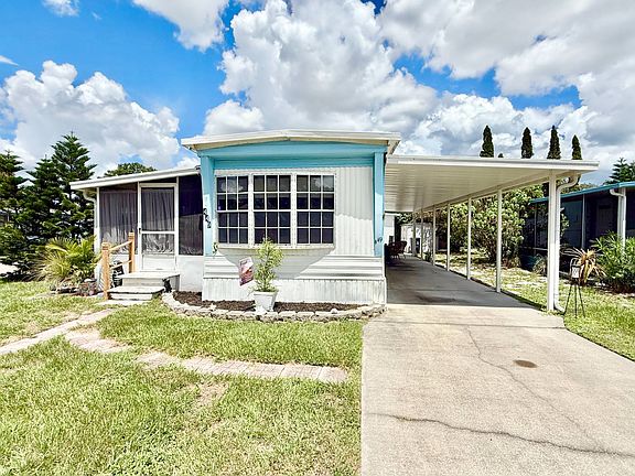 Welcome to 449 Bluster Dr. in the sought-after city of Port Orange, FL. This charming 2-bedroom, 2-bathroom home is located in the peaceful 55-plus community of Lighthouse Point. As you enter, you'll find a screened-in porch area, perfect for enjoying the outdoors. Stepping inside, you are greeted by a spacious separate living area. The dining room is conveniently situated just off the living room, providing an ideal space for gatherings. The kitchen is bright and open, equipped with all essential appliances and featuring an island that adds extra counter space for meal prep. This home boasts a split floor plan, with the master suite and ensuite bathroom on one side, while the guest bedroom and guest bathroom are located on the opposite side, ensuring privacy for everyone. The laundry area is conveniently situated right off the guest bedroom, making it accessible for all guests. A back entrance leads you to a lovely utility shed and a covered patio area, perfect for enjoying the beautiful Florida weather. Lot rent is lower compared to many other communities in the area at 850 month. As an owner, you will get to enjoy all of the amenities that light house point offers which includes a spacious clubhouse, nicely stocked library, fully outfitted fitness center, and a well-equipped game room, you will never lack for interesting things to do. Lighthouse Pointe also caters to the more active lifestyle by providing residents with shuffleboard courts, billiards, a community swimming pool, and a whirlpool-spa-hot tub, On-site management, and laundry facilities for your convenience. This home truly has it all-it's welcoming, cozy, and ready for you to make it your own!