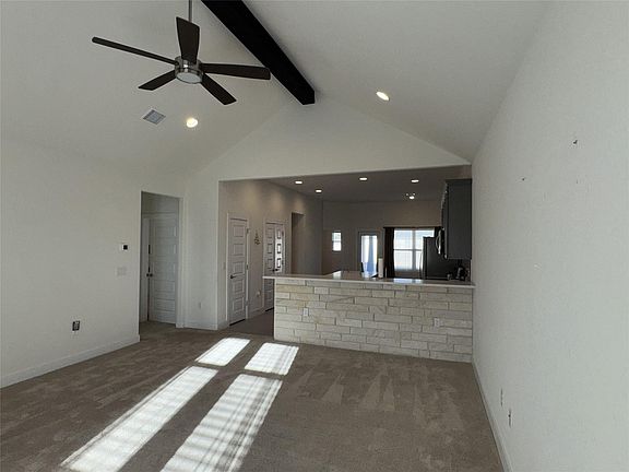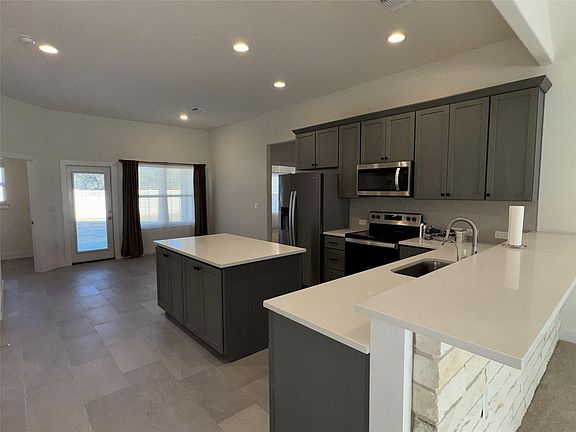 This inviting spacious one story home offers an impressive 1731sq ft with 4 bedrooms (2 have en suites) and 3 full bathrooms. This home features an open floor plan with vaulted ceilings great for entertaining and comfortable living. A kitchen that serves up a smile revealing a large island, quartz counters, breakfast bar, pantry, and stainless steel appliances. The main bedroom has a roomy closet with an en suite which includes a dual vanity, garden tub, and a big walk in shower. Relax on your large covered front and back patios. Easy care yard with automatic sprinklers front and back. Yard is complete with a privacy fence. Nestled in the Texas Hill Country friendly city of Bertram. Low taxes and easy access to major highways. Don't miss this Drennan Day Custom Home!