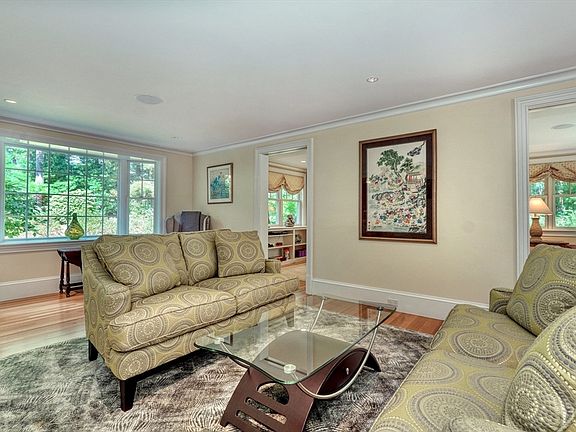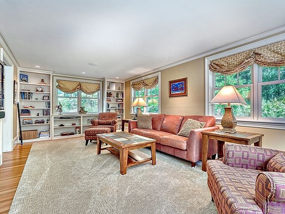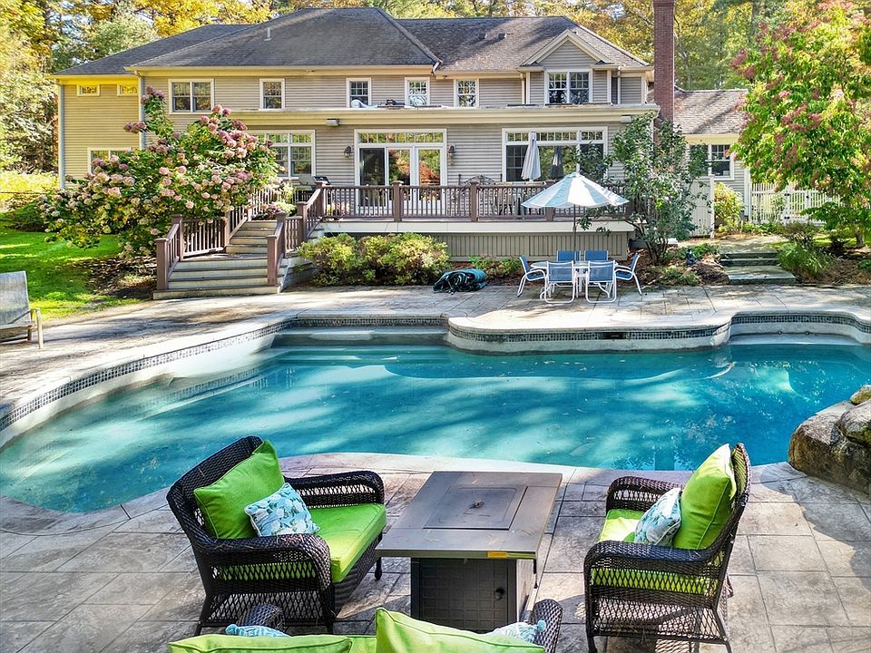 Nestled in the woods but close to town center, this custom-built home has every high end finish. Enter via foyer to living room and den/office with pocket doors to your right and oversized dining room to the left, on to the chef's kitchen oversized windows, Wolf/SubZero appliances, butler pantry and dining area that overlooks the deck and patio surrounding the heated gunite pool and private, manicured lawn. Also on the first floor is a fireplaced family room, vaulted ceiling office, a full bath and two walk in closets & mudroom. The second floor boasts a primary suite with custom walk-in closet, sitting area and sumptuous bath with double sink, air jet tub and shower. Additional three bedrooms, cedar closet and two more full baths. Basement features game room, exercise room, craft room and several storage closets plus half bath. Three car garage, GEOTHERMAL heat/cooling with propane starter and whole house generator.