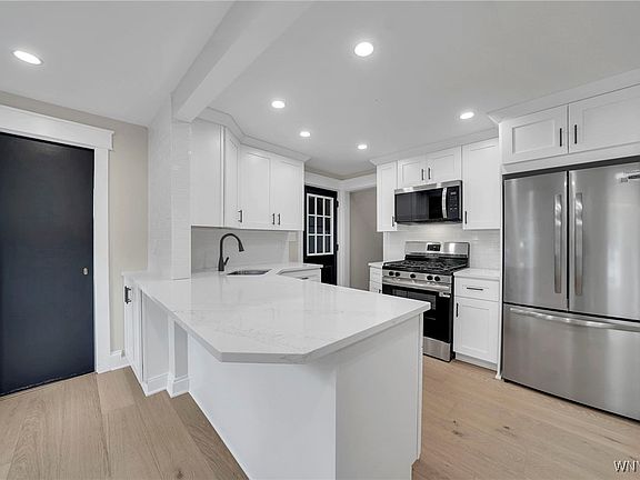 Walking distance to Smallwood School! This beautiful ranch shows like a new custom build! Interior is completely remodeled and ultra modern. It features high end kitchen cabinets with beautiful quartz countertops. All new stainless appliances: Dishwasher, Gas range, microwave and refrigerator. Custom tile backsplash, and peninsula island. Gorgeous custom 8" wide hardwood plank throughout. Bedrooms feature all new wall to wall carpet. Brand new full and half bath, lighting throughout. New hot water tank, newer furnace, all new interior and exterior doors. Outside features amazing overhang with custom tongue and groove ceiling with recessed lights, and new driveway. Quiet backyard in this high demand neighborhood. Must see, will sell fast!