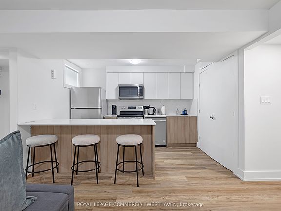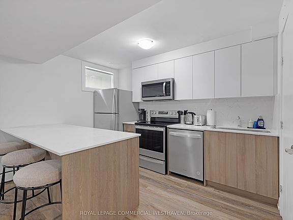 Welcome to this stunning home in one of Toronto's most sought-after neighborhoods. This modern 2-bedroom, 1-bathroom suite offers 823 sq. ft. of thoughtfully designed living space, featuring sleek laminate flooring throughout, ample closet space, and the convenience of ensuite laundry. The open-concept layout seamlessly connects the spacious living and dining areas to a contemporary kitchen equipped with stainless steel appliances, a center island, and a stylish backsplash perfect for both everyday living and entertaining. Both bedrooms are bright and well-sized, each offering generous closet space and natural light. The beautifully finished 3-piece bathroom features modern touches that complement the suites overall aesthetic. Ideal for those seeking comfort, style, and convenience in a high-demand location.
