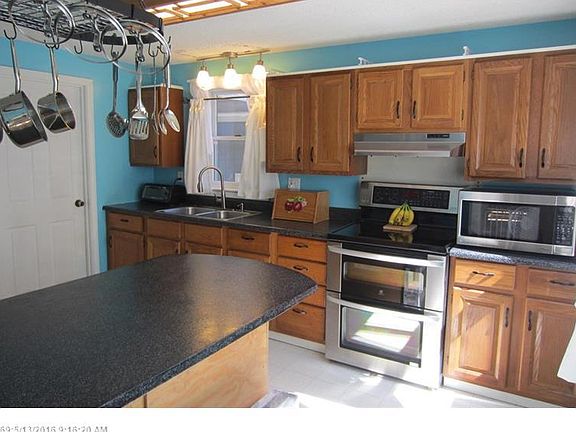 Affordable & attractive Contemporary home in a convenient location. Spacious kitchen w/ oak cabinetry & all new appliances. Open concept dining/living w/ cathedral ceiling in dining room. New pellet stove on brick hearth. 3 bdrms & full bath on 2nd floor. Master bdrm w/ walk-in closet. Half bath and laundry on first floor. Room to expand in basement. 24x24 1-bay garage with attached shed. Commuting to Portland; Augusta; Bath/Brunswick; or Lewiston/Auburn from this central location is a breeze.