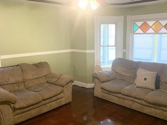 - Liv Dscrp: Flooring - Hardwood, Ceiling Fan(s), Window(s) - Stained Glass