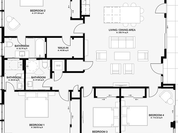 1800sq.ft apartment. -- 4 spacious bedrooms / 3 bathrooms