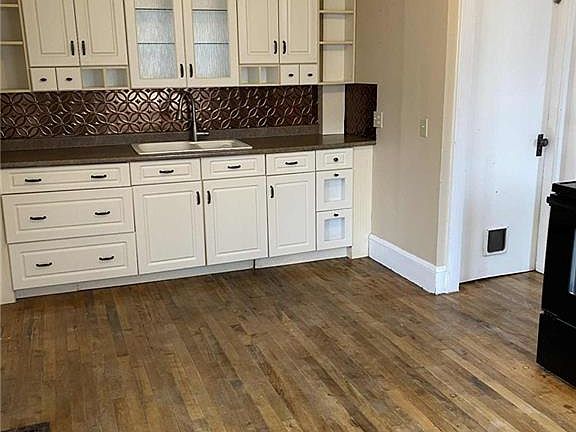 Corner lotLarge windowsBeautiful hardwood floorsUpdated eat-in kitchenModern cabinetryPrivate back deckGenerous bedrooms