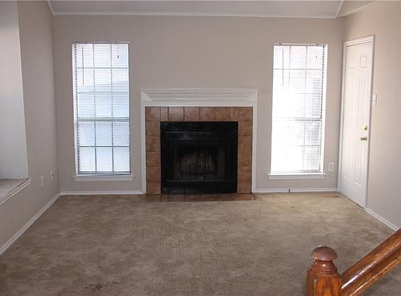 Windance Condos two story in sought after Coppell ISD. Kitchen remodeled with new cabinets, countertops, and sink in 2021. Wood burning fireplace with tile surround and wood mantle. One bedroom downstairs, one bedroom upstairs. Ceiling fans in both bedrooms. Walk in closet with built in shelving. Linen closet in bathroom. Upstairs bathroom remodeled with walk in tile shower and dual vanity sink in 2018.