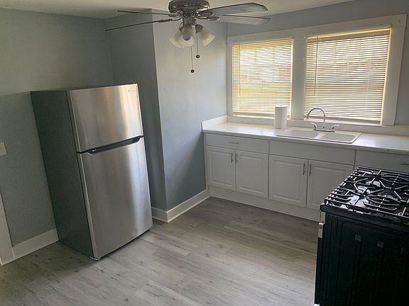 This home features a kitchen with new floors, cabinets, countertop, stainless steel refrigerator and gas stove/oven. Updated bathroom, including shower added to clawfoot tub. Ceiling fans throughout. No carpet. Bathroom has great storage. Includes washer/dryer hookups. (Washer/Dryer can be included for additional monthly fee.) Tenants responsible for all utilities. Pets are allowed on a case-by-case basis with a pet fee. No smoking. Lawn care included in rental rate. This property has access to a small backyard. Driveway is dedicated to rear building; parking for one small car in driveway is allowed with adequate space left for rear tenant to access their driveway. 12-month lease duration.